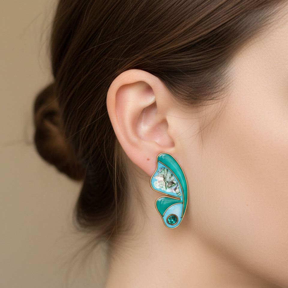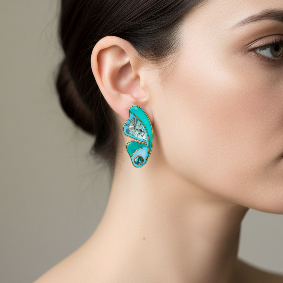 Freschi e luminosi come acque cristalline illuminate dal sole, gli orecchini CUPA TWIN BLUE evocano la magia dei riflessi marini. Le tonalità turchesi si fondono con la profondità cangiante della madreperla, creando giochi di luce sempre diversi, mentre le linee fluide e i dettagli dorati esaltano un’eleganza naturale. Un delicato punto luce completa il design con un tocco contemporaneo. Realizzati con cura in 4 ore di lavorazione, sono perfetti per chi ama colori vibranti ma raffinati, capaci di illuminare il viso con leggerezza e stile.